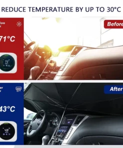 Be the first to review “Car Windshield Sun Shade with Heat Insulation and UV Protection – Foldable Auto Sun Shield Cover” Cancel reply